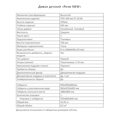 Диван детский Ричи NEW (Аквилон) продается в интернет-магазине mebelin-pavlovskij-posad.ru по цене 22 907 руб. Есть доставка по Павловскому Посаду и Московской области. Возможность подъема на этаж и сборки уточняйте у менеджера по телефону 8(800)505-27-11.
